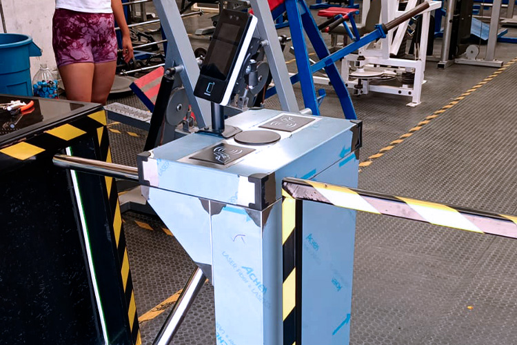 El sistema de torniquete y detector de huella es una solución moderna y segura para controlar el acceso de los usuarios al área del gimnasio